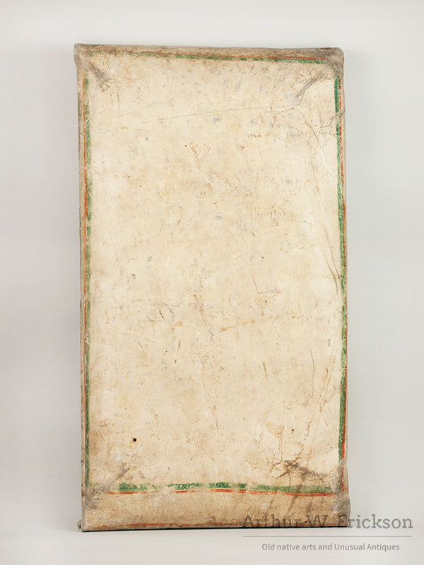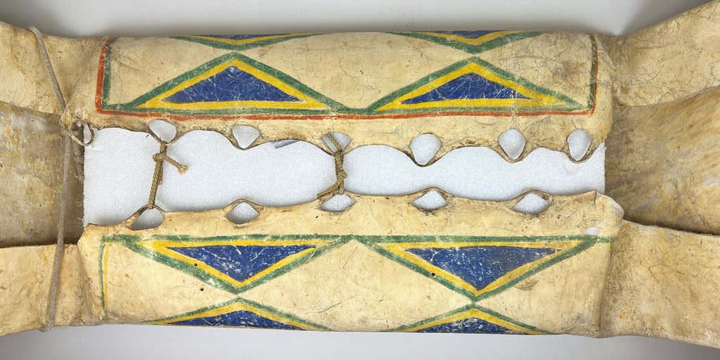 This is a large old and used Plateau parfleche. It was used extensively before it was collected which gives it great character. The colors are good and the design is strong.  This is the kind of parfleche you don't often get the chance to own.  From the collection of Steve Barrett.