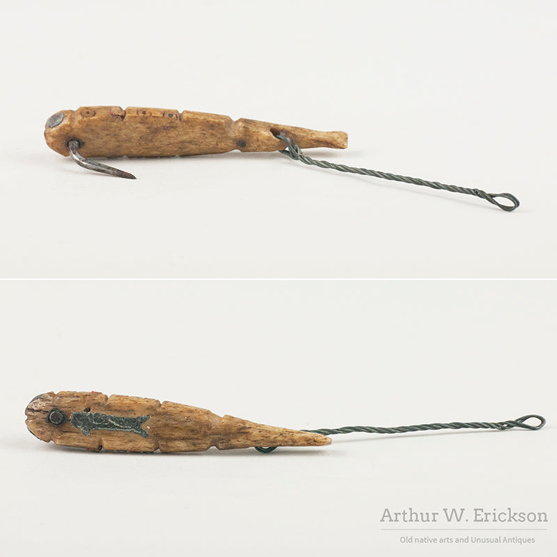 Unusual Inuit Bone Fishing Lure with Circle & Dot Motif & Lead Inlays