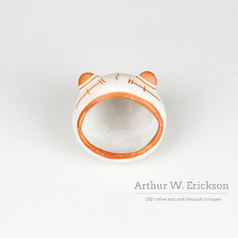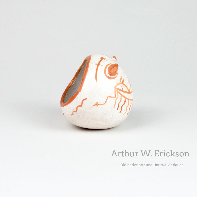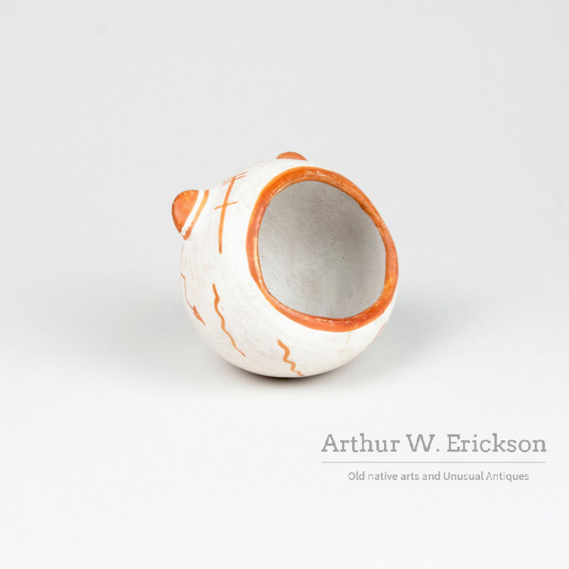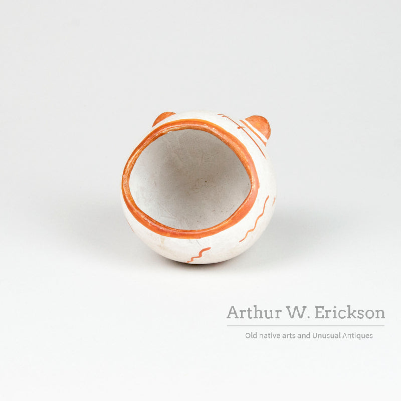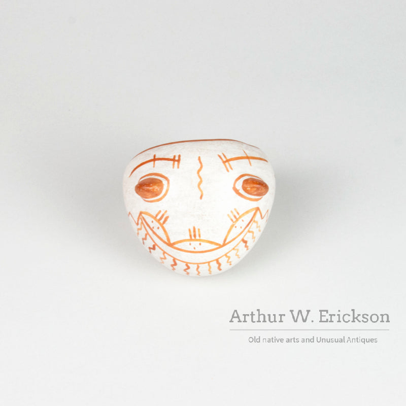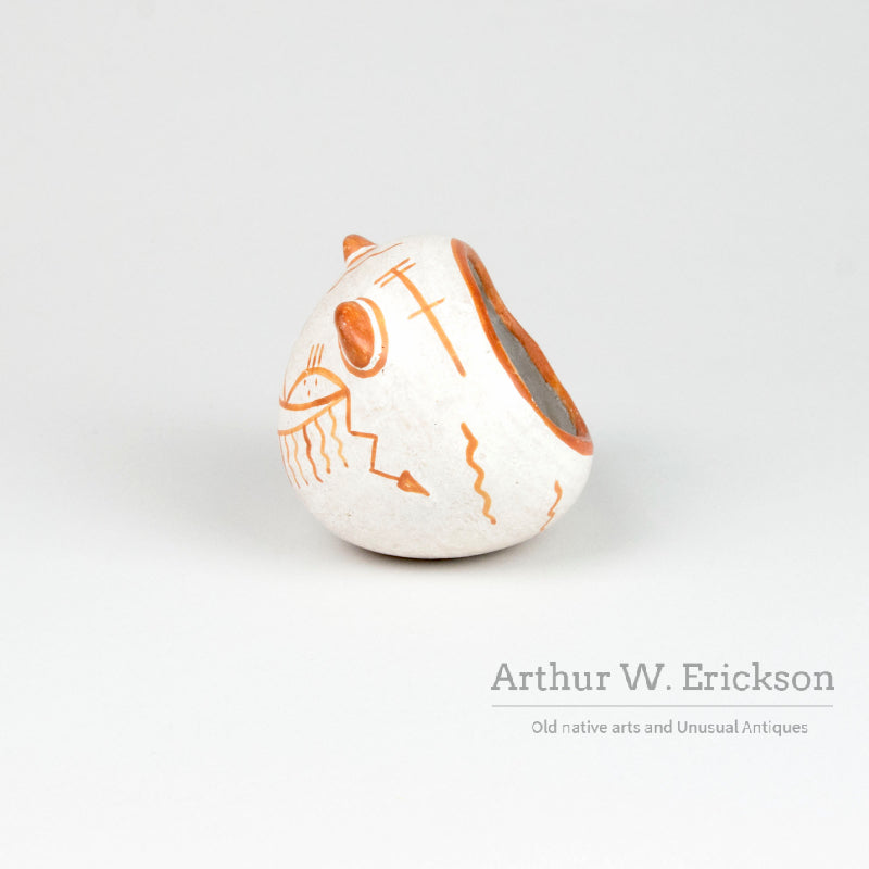 Demonstrating an impish sense of humor, the renowned Acoma potter made this marvelous critter with bulging eyes and a wide smile. The painting on it only adds to the charm. Just looking at this piece will make you grin. Think about the pleasure this small critter will give you.